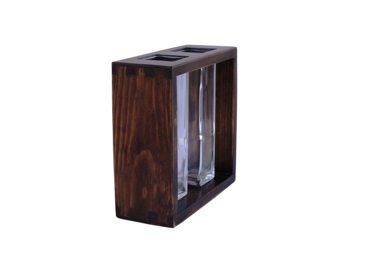3’lü Ahşap Camlı Vazo_Ceviz Rengi