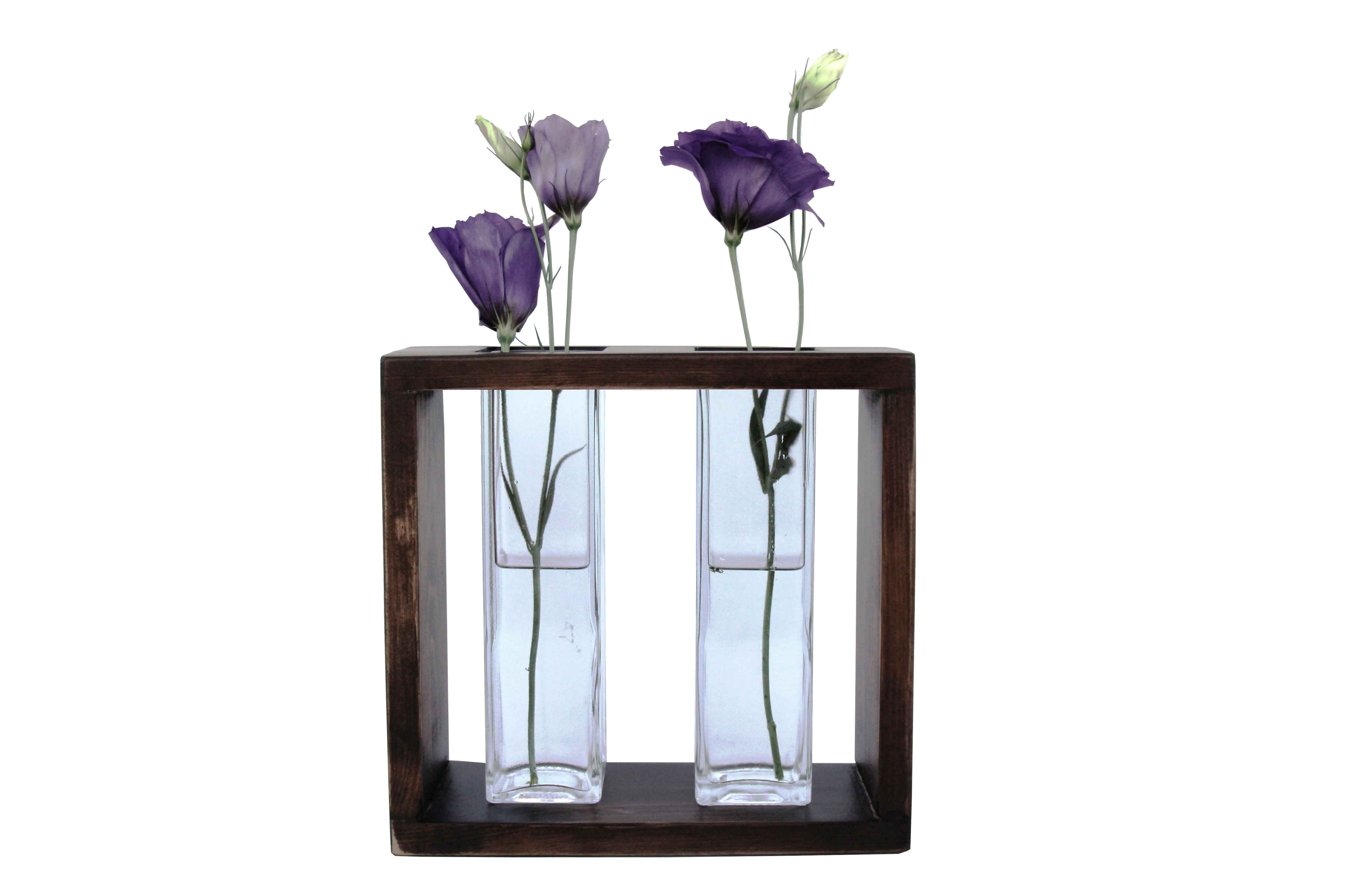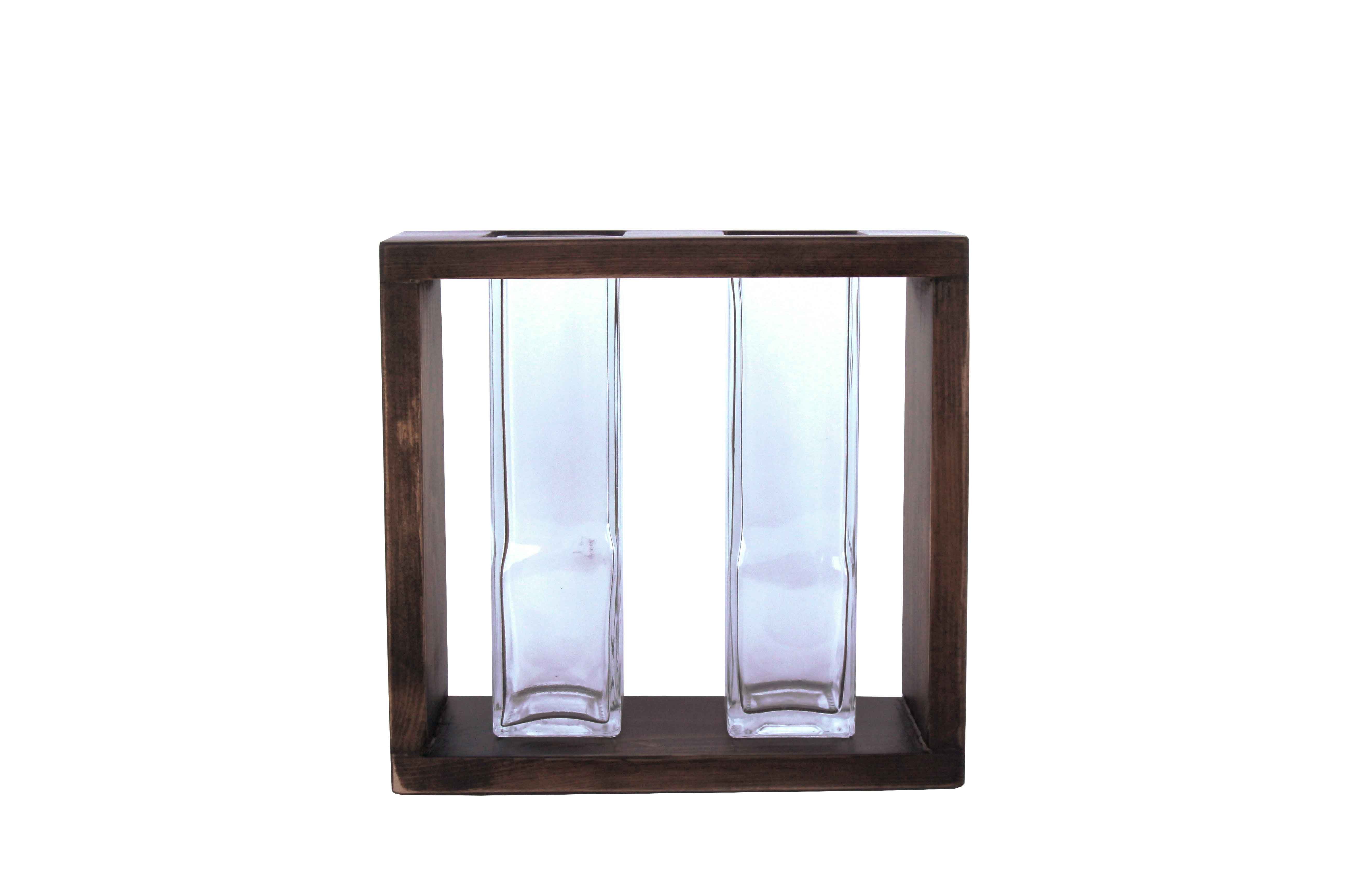 2’li Ahşap Camlı Vazo