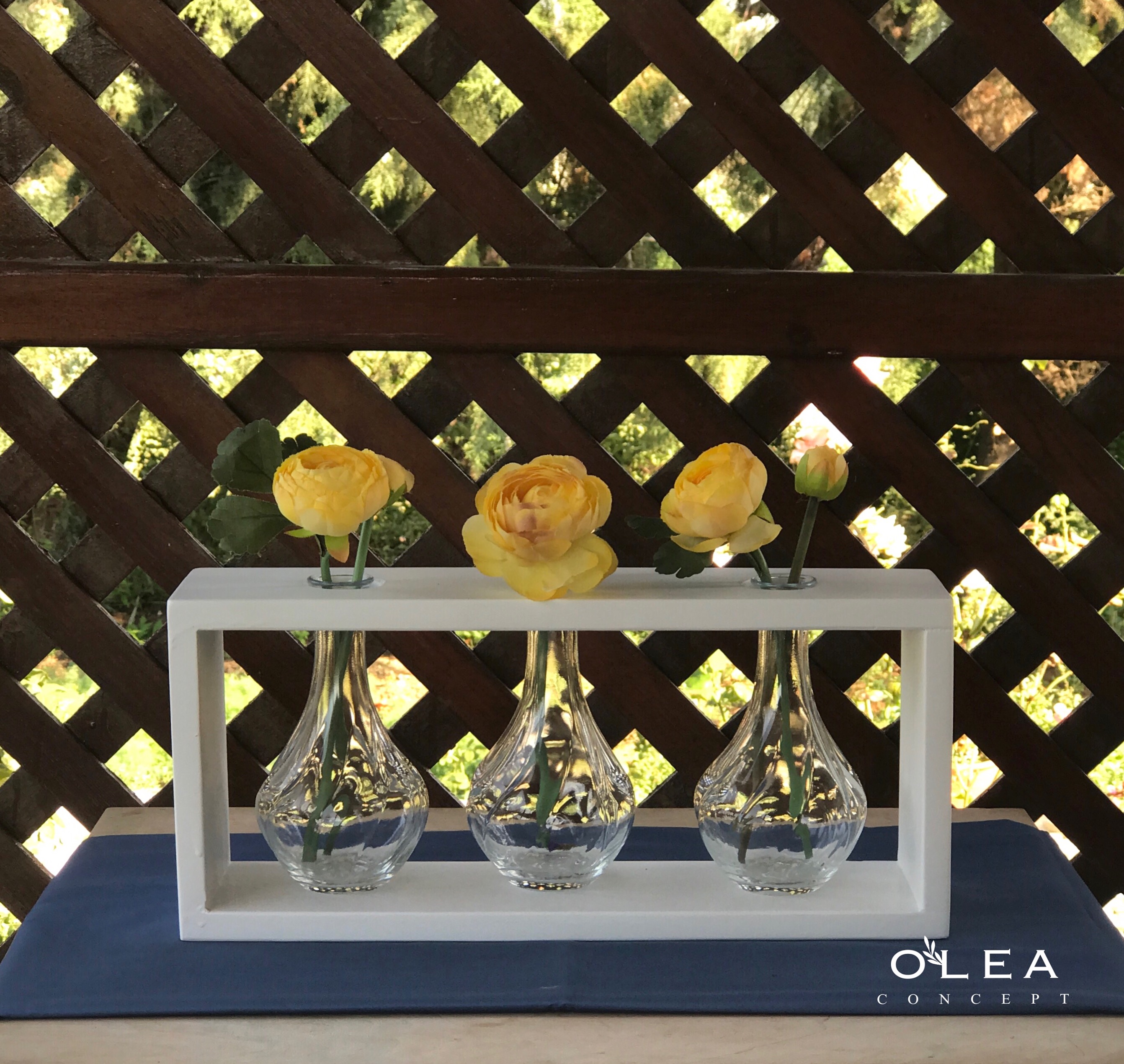 Ahşap kutu ve 3 adet cam vazodan oluşur.